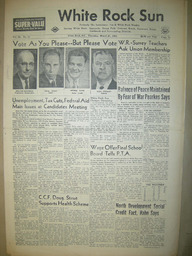 Summary Content type Content type Page Collection(s) Collection(s) The White Rock Sun, March 27, 1958 Genre Genre newspaper Origin Information Origin Information Place Whiterock, B.C. Date Created/Date Issued 1958-03-27 Publisher Atkinson and Izowsky Publication/Container Information Publication Title Publication Title The White Rock Sun, March 27, 1958 Physical Description First page number First page number 1 Last page number Last page number 1 Relationships Related Item Related Item Relationship Type host Title The White Rock Sun, March 27, 1958 Identifiers Handle Handle Handle placeholder Access and Rights Rights Statement Rights Statement NO COPYRIGHT - NON-COMMERCIAL USE ONLY Subjects and Classifications Subject Topic Subject Topic newspapers
